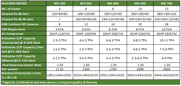 Our advanced sorting technology features 7th Generation FPGA Processing with intelligent digital image sorting for unmatched precision. With a high-speed scanning capability of 35,000 lines per second and sniper technology 3.0, the MG Series Color Sorter ensures pinpoint accuracy and an improved carry-over ratio. The system is enhanced with an auto-calibration feature, offering seamless auto settings and sorting control for efficient and reliable performance.