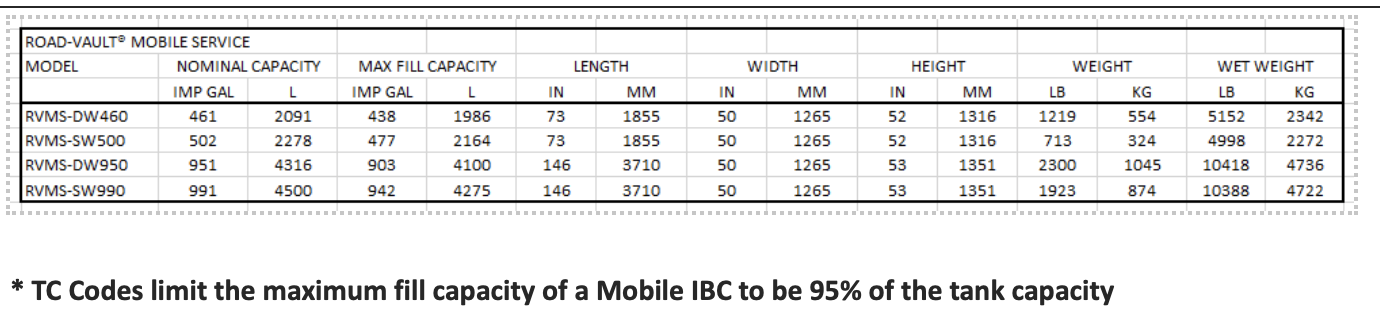 Easy to use and install, they’re the conveniently sized fuel transportation solution that falls between a slip tank and a dedicated fuel truck. Tanks come complete with all of the standard features your high-volume mobile refueling application needs, and are available in four base sizes: 2,100 and 4,300 liters in dual wall (protected) configurations and 2,250 and 4,500 liters in single wall configurations. Road-Vault mobile service tanks are designed to be permanently mounted to a flat deck on the back of a truck or on a trailer.
