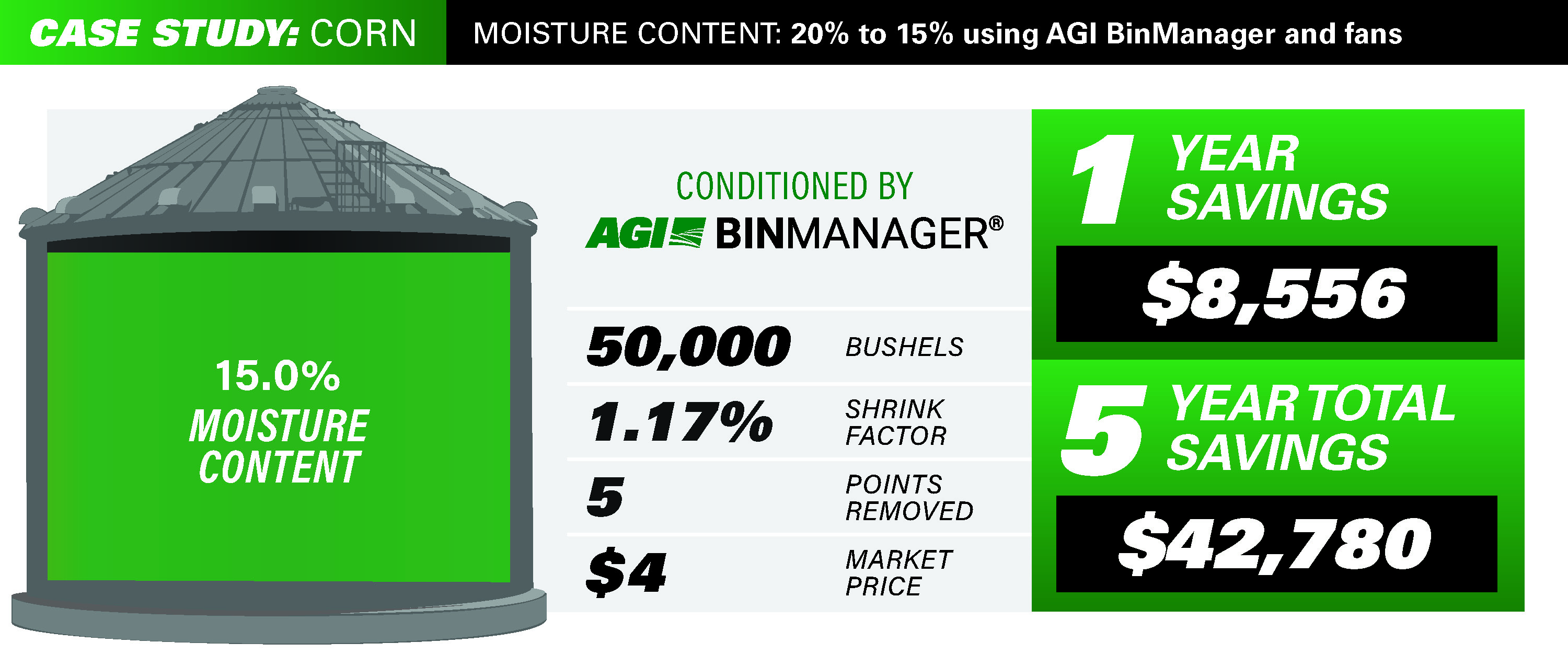 It’s not enough to just fill your grain bins; you invest too much in your crop to run the risk of shrinkage or over-drying. AGI BinManager® is calibrated to automate fans, moisture dry down, rehydration and cooling to achieve and maintain target moisture levels while maintaining protein, starch and oil content. As the industry-leading grain bin management solution AGI BinManager preserves and conditions your investment until you are ready to sell.