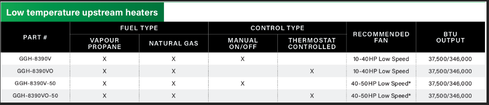 AGI’s Low temperature upstream heaters are your solution when a slight rise in temperature is required to aid in drying your crop. Low temperature heaters are designed to provide a consistent amount of heat, which results in less cycling and increases the longevity of components.