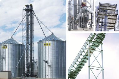 Productos de sistemas de escalas, plataformas y jaulas de seguridad para un acceso seguro a los depósitos de granos.